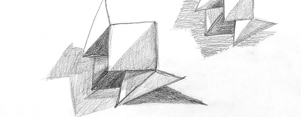 Wir falten einfache Objekte: ein Papierschiffli und ein "Himmel- und Höll-Spiel". Als erste Übung skizzieren wir die geometrischen Objekte mit Bleistitift und beobachten die Licht- und Schattenflächen.